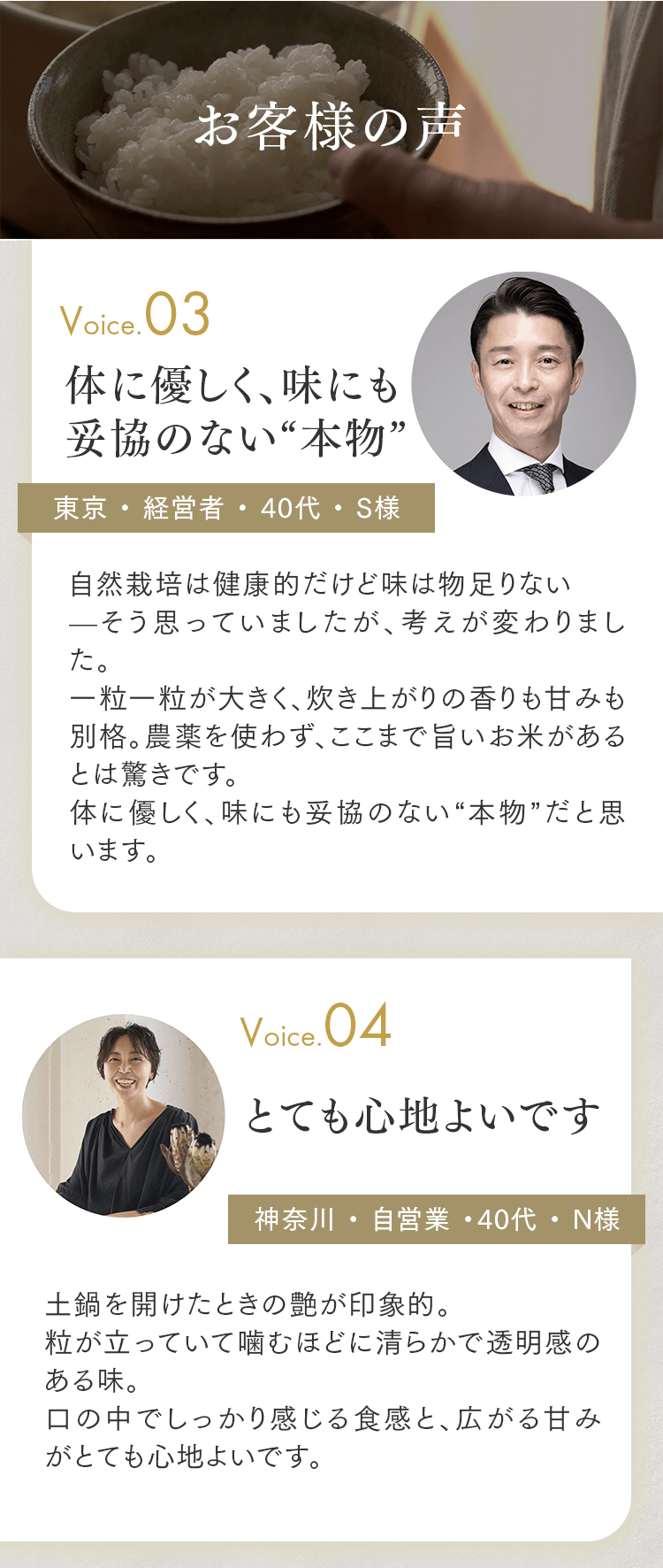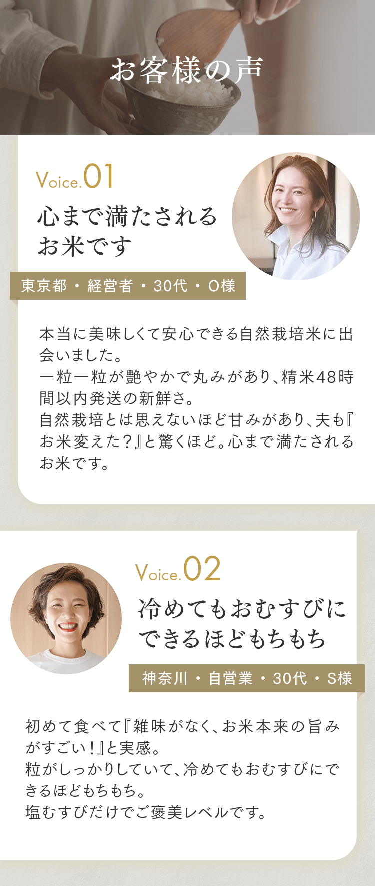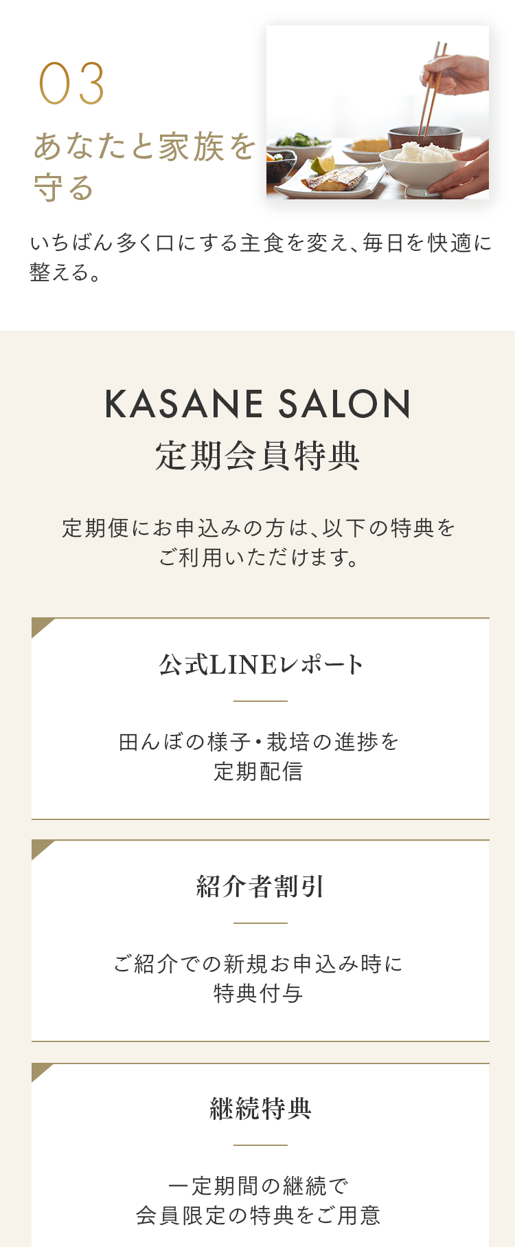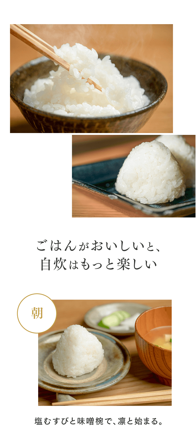 まずは5㎏で体験する → 月500名の今月枠を確保する → まずは5㎏で体験する → 月500名の今月枠を確保する → FAQ Q. スキップできますか? A. 可能です。出荷予定日の8日前 23:59までにフォーム申請。期限後は対応できません。 Q. 解約はむずかしい? A. フォーム1枚で完了。出荷予定日の8日前 23:59までに申請ください。 Q. 配送はいつ? A. 受注後に精米し、精米後48時間以内に出荷。お届けは月1回の出荷スケジュールに沿って手配します。 Q. どこから届きますか? A. 生産者指定ロットを有機JAS小分け認証の精米工場で受注精米後に出荷します。 Q. 保存方法は? A. お米は生鮮食品です。開封後は涼所保管。高温期は密閉容器+冷蔵を推奨します。 Q. 品種は選べますか? A. 原則「今月の品種」をお届けします(白米/玄米は選択可)。同一収穫年の単一品種で、ブレンドは行いません。天候・在庫により変更となる場合があります。 Q. 肥料は何を使っていますか? A. 動物性由来不使用(プラントベース)。籾殻・米ぬか・藁など植物由来の資材で自家堆肥を仕込み、微生物の働きを活かしています。 Q. 価格の理由を教えてください A. 共同出荷や公的補助に依存しない独立経営の田からお届けしています。生産者へは適正な対価を、工程では低温保管・受注精米・多段選別などの実費をかけ、その分を正直に反映しています。良い田を未来へつなぐための循環の価格です。 重ねた時間を、今日の一膳へ まずは5㎏で体験する →